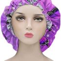 Babrukda Satin Sleep Cap, Double Layer Reversible Satin Bonnet Hat Curly Girl Headwear Hair Cap Gifts For Frizzy Hair Women Purple Butterfly Bling Night Cap