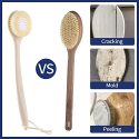 HYGIENE AND NEVER MOLD:If youve ever used brushes made of wood or bamboo, youve probably experienced how quickly they get moldy. The disgusting black spots of mold make you want to throw the shower brush in the trash. Our brushes are made of plastic and PET nylon, and they wont get moldy as long as you wash them after use and hang them up to air dry. It also shines like new after a long time of use, greatly extending its life.