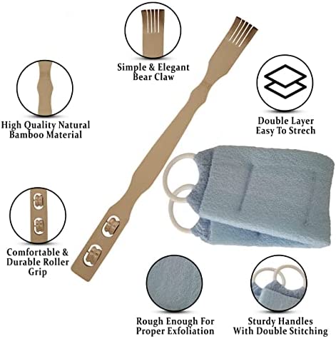 BAMBOO Back Scratcher for Men, Women & Kids – for Itches – Gentle on Skin -17 Wooden Back Scratchers, Long Sturdy Handle Suitable for Every Itch … FREE Exfoliating Back Scrubber with Handles Two Sides for Body Shower Deep Cleans Skin Massages Invigorating Blood Circulation Men Women One Size (Back Scrubber)