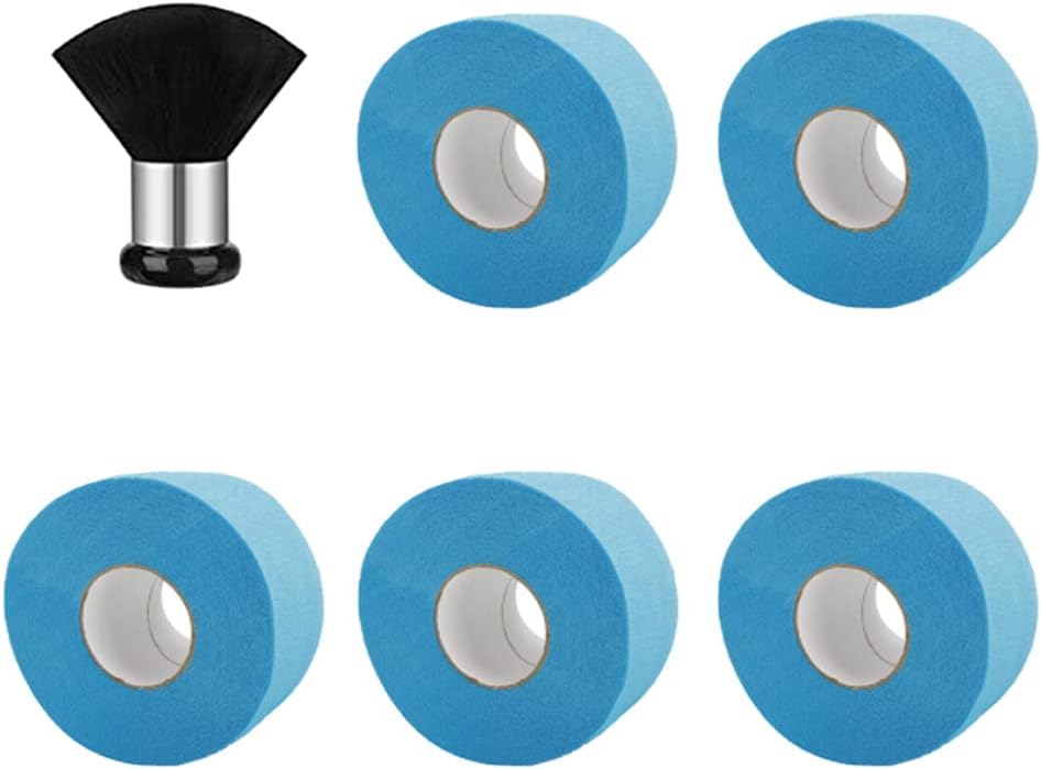 Barber Paper Neck Strips Paper Neck Strips(5 rolls of 95 each) – Material: Fiber paper – Color:blue with white glues – Size: one size fit all,kids to adults Each strip is 12.