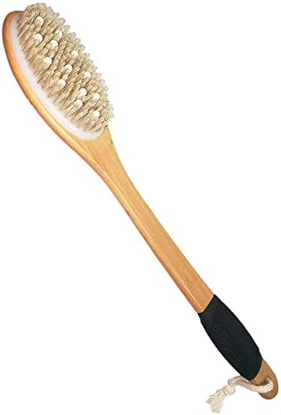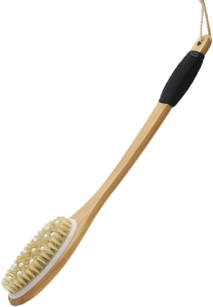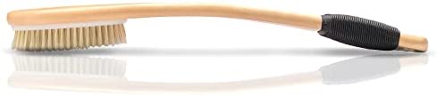 OWIIZI Bath Brush Wooden Curved Long Handle Antiskid Body Shower Brush for Exfoliating, Natural Bristle Back Scrubber for Shower Use Wet or Dry