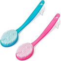 Bath Brushes With Bristles, Long Handle For Exfoliating Back, Body, And Feet, Bath And Shower Scrubber, Random Colors (2 Pack)