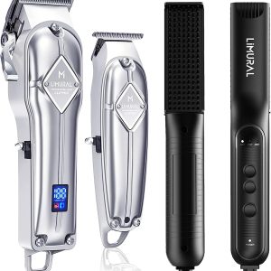 Professional Hair Clippers and Trimmer Kit with Beard Straightener for Men