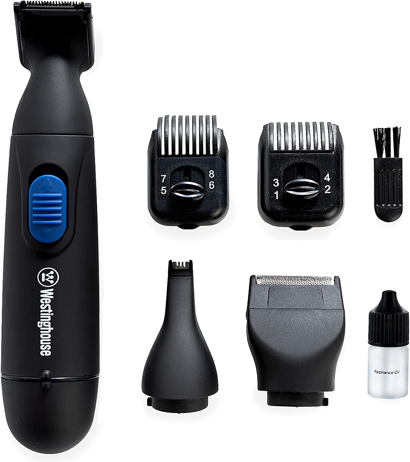 Beard Trimmer for Men by WESTINGHOUSE – Mutli-grooming set includes one Electric Razor with Foil head stainless steel blades, one ear and nose trimmer attachement and 2 multi-length attachable trimmer heads.