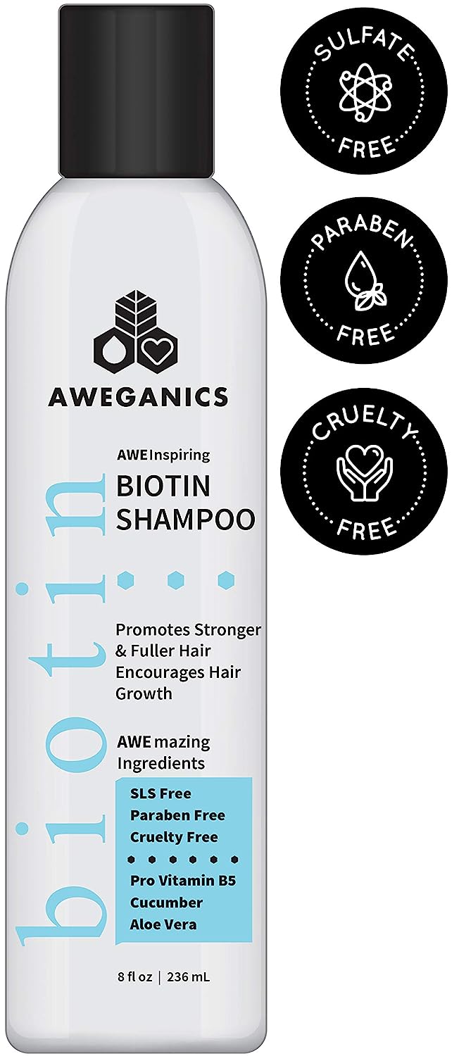 Biotin Hair Growth Shampoo, AWE Inspiring Thickening Shampoo for Hair Loss and Thinning Hair – SLS-Free, Paraben-Free, Cruelty-Free, Moisturizing B5 Vitamins, Cucumber, Aloe Vera