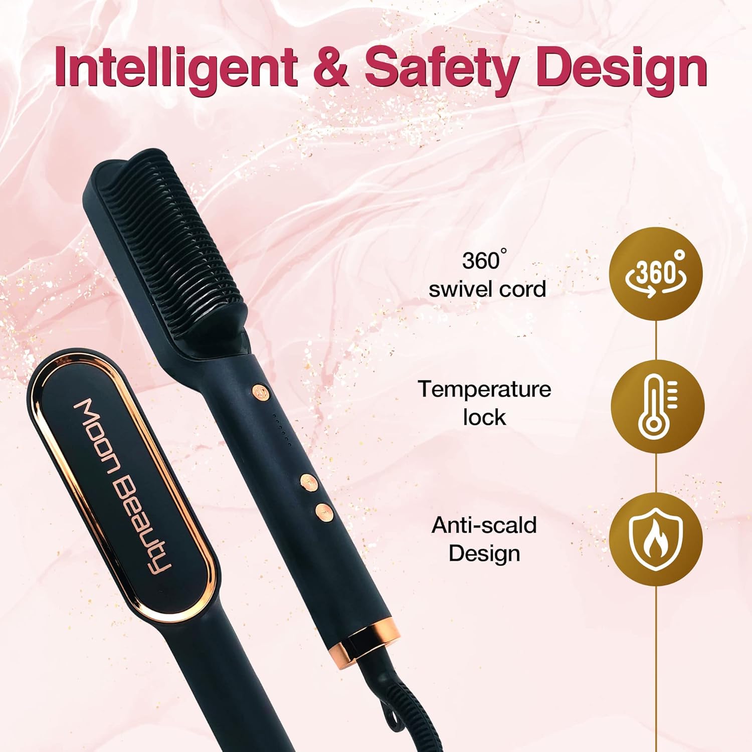 5 Heat Settings for Different Hair Types: With 5 Temperature Settings, straightening brush can meet various styling needs for different hair types.