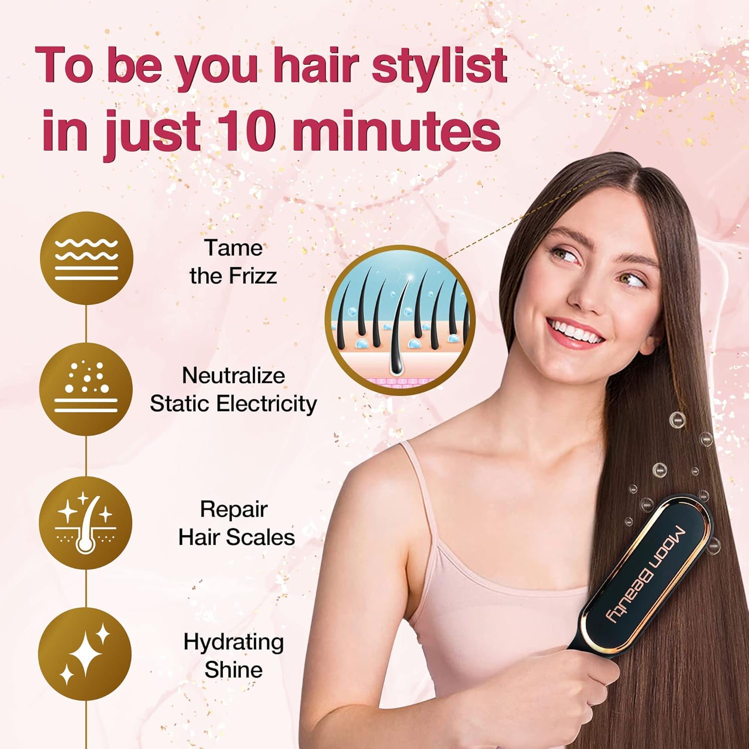 PTC Heating & 3D Brush Teeth: hair straightener brush adopts 3D brush teeth with PTC heating technology to reduce damage from heat.
