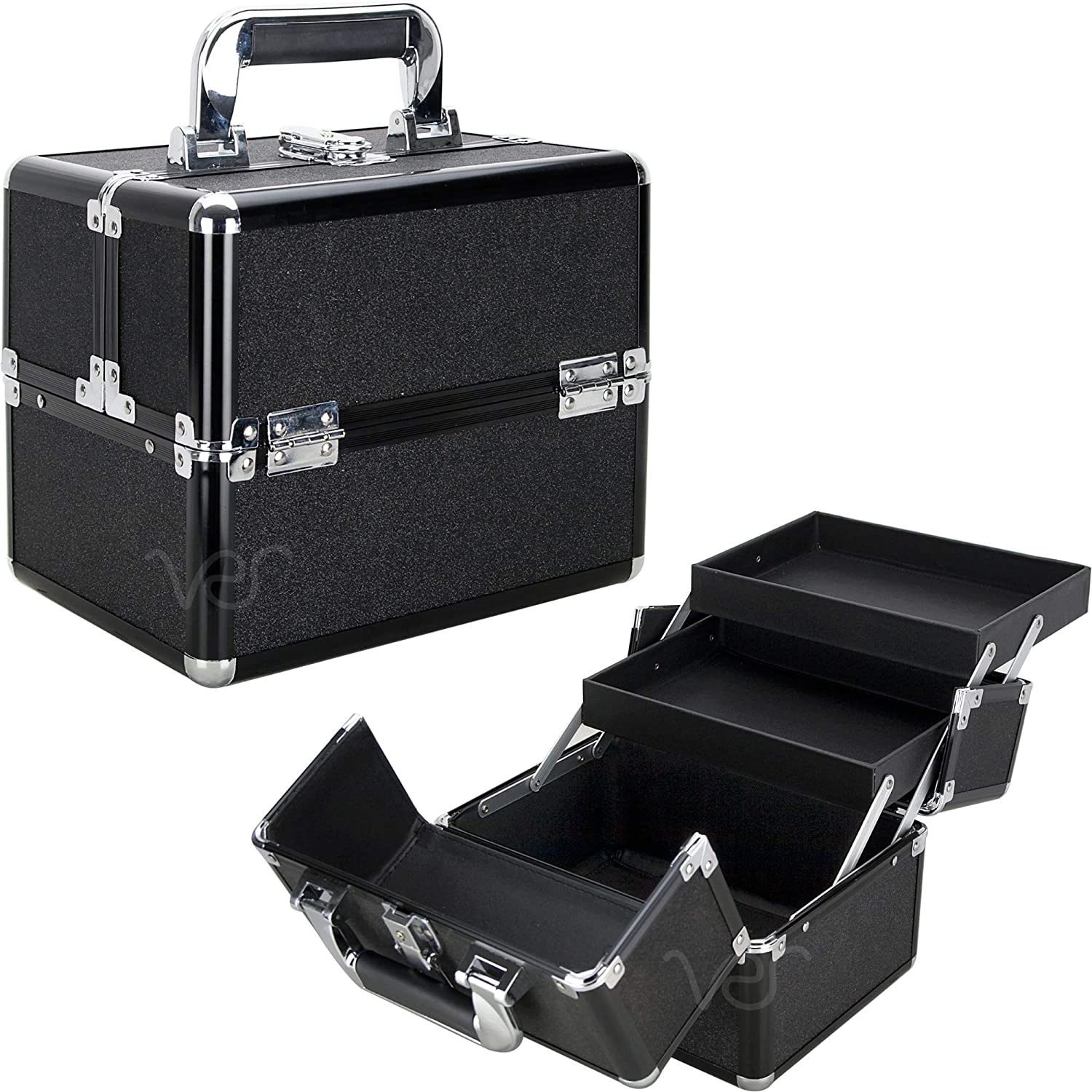 2-tiers Extendable Trays Cosmetic Makeup Train Case Organizer Travel - VK002, Champagne Glitter, champagne gold glitter (VK002-511)