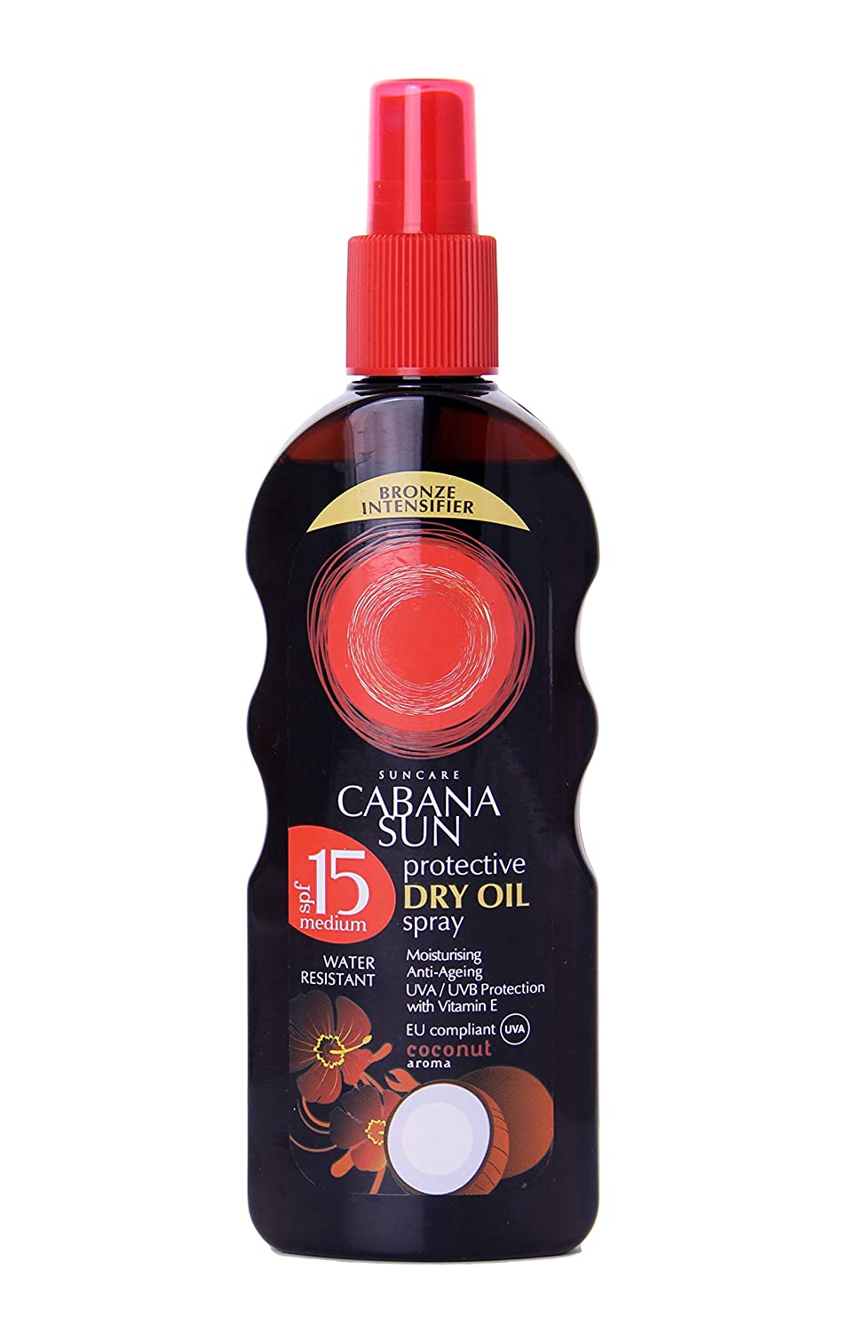 Cabana dry oil spray SPF15 provides all over body and scalp protection from harmful UVA and UVB rays.