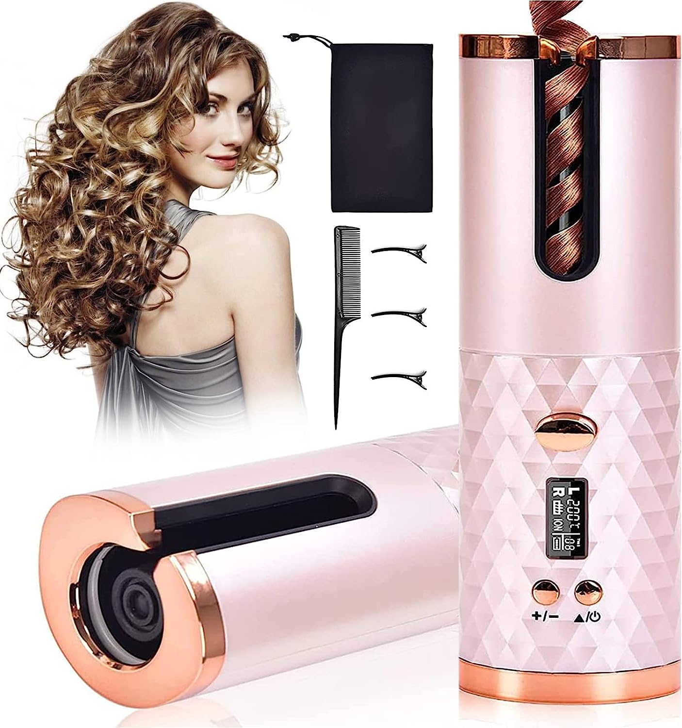CORDLESS & PORTABLE:Say goodbye to the limitations of cables, this self curling iron supports USB charging, working time up to 1 hour after full charge (if 300℉), and you can use it anytime/anywhere. The auto curler also comes with a black storage bag for easy carrying, which is perfect for travel, party, home use or as gifts.