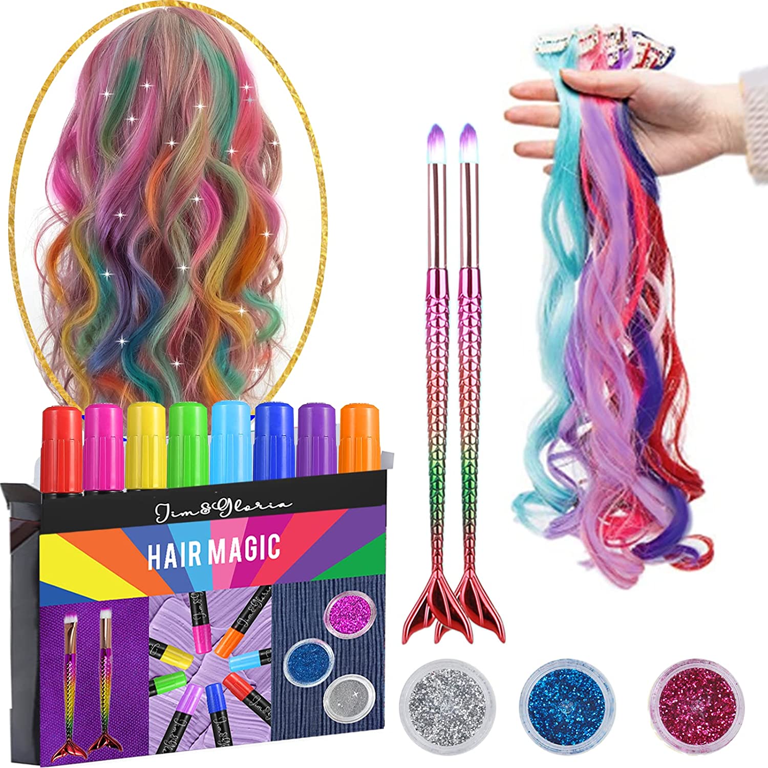 Chalk Comb Glow in The Black Light for Girls Kids, Temporary Hair Chalk Washable Hair Color Dye for Children”s Day Birthday Halloween Christmas Party Cosplay DIY