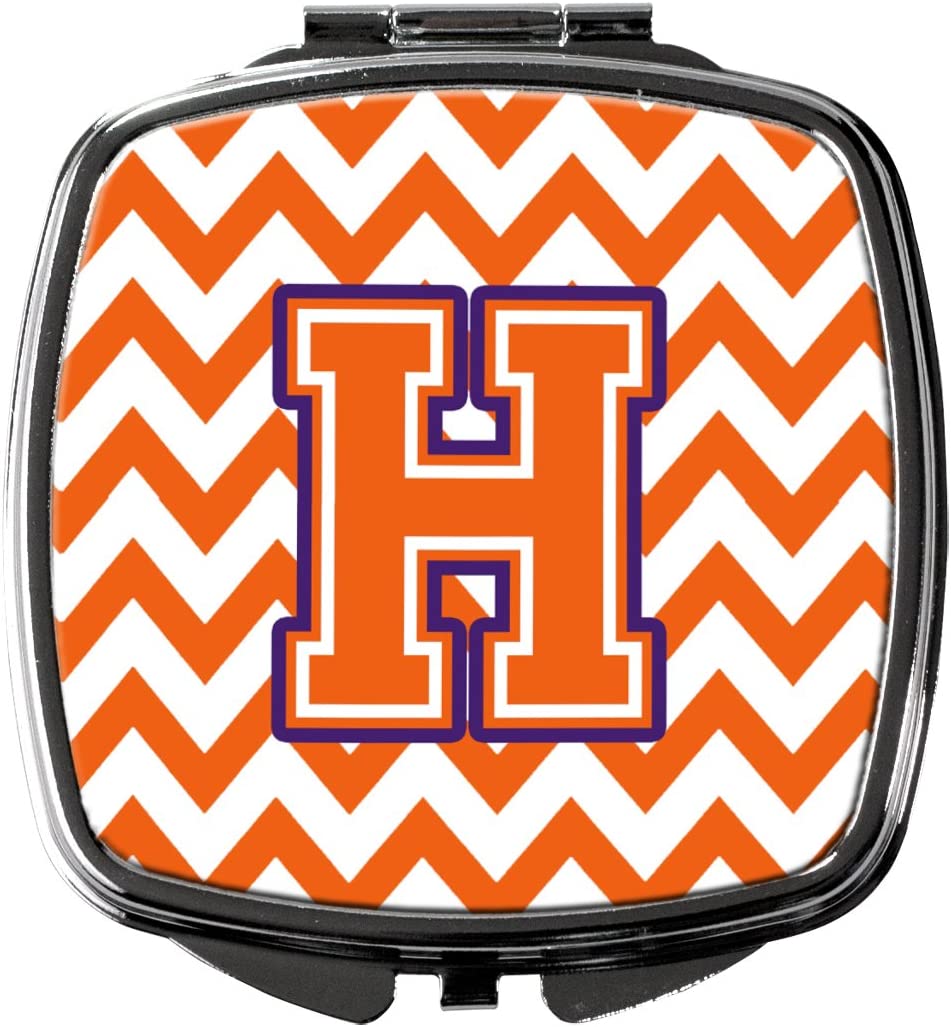 CJ1062-HSCM Letter H Chevron Orange and Regalia Compact Mirror, Decorative Travel Makeup Mirror for Women Girls Gifts Pocket Makeup Mirror Folding Handheld