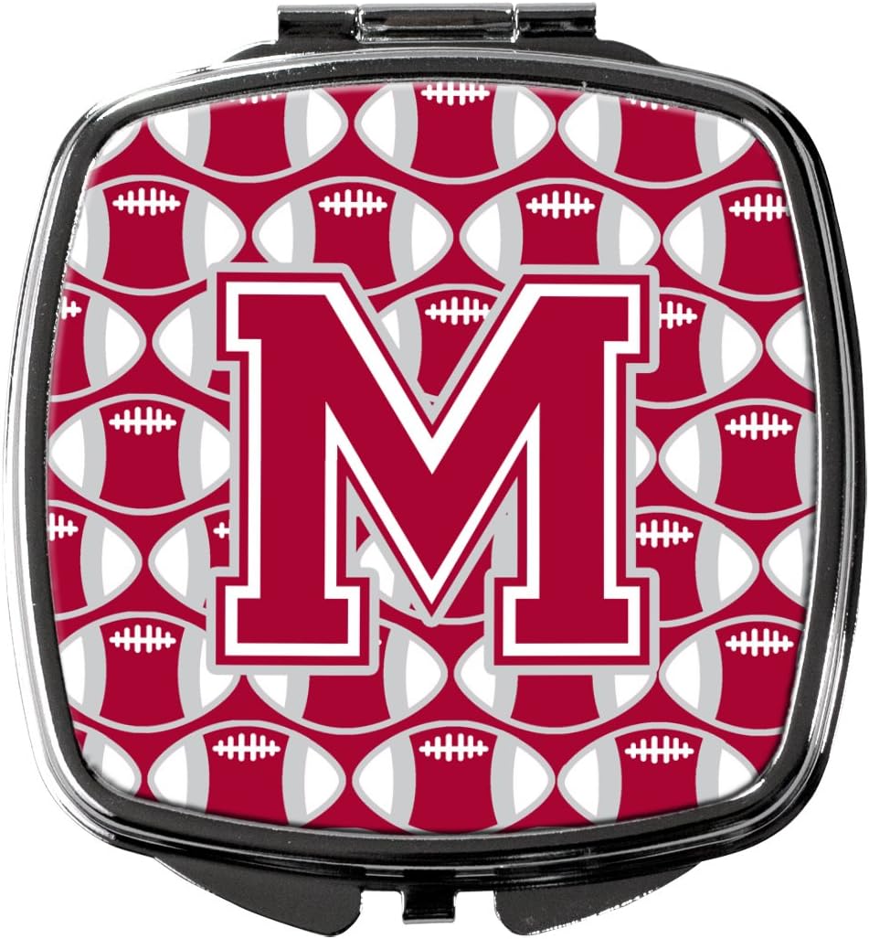 CJ1065-MSCM Letter M Football Crimson, grey and white Compact Mirror, Decorative Travel Makeup Mirror for Women Girls Gifts Pocket Makeup Mirror Folding Handheld