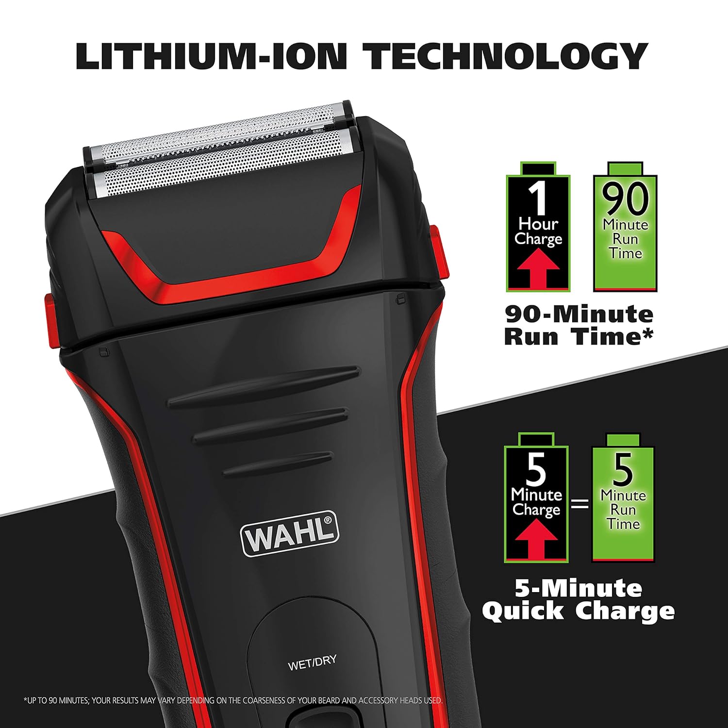 This durable electric shaver features a lithium ion battery with a 90-minute run time from 60 minutes of charging, plus a 5-minute quick charge option.