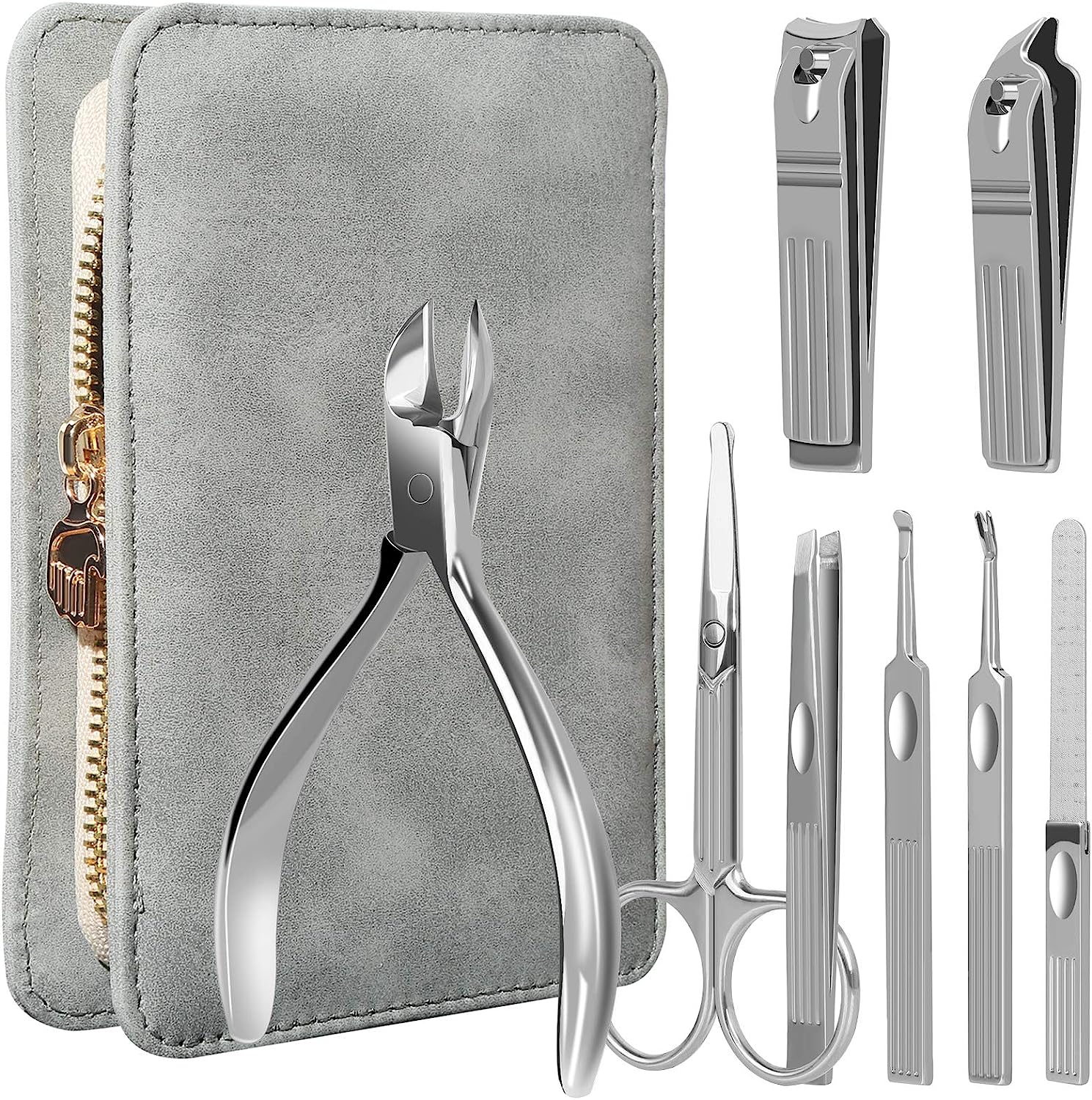 Ingrown Toenail Removal Kit: Including podiatrist toenail clippers, curved edge fingernail clippers, slant edge ingrown nail clippers, nail file, ear tools, nose hair scissors, eyebrow scissors and peeling tools. All of them are made of high-quality stainless steel with high technology, from rigorous and professional process, no rust after cleaning.