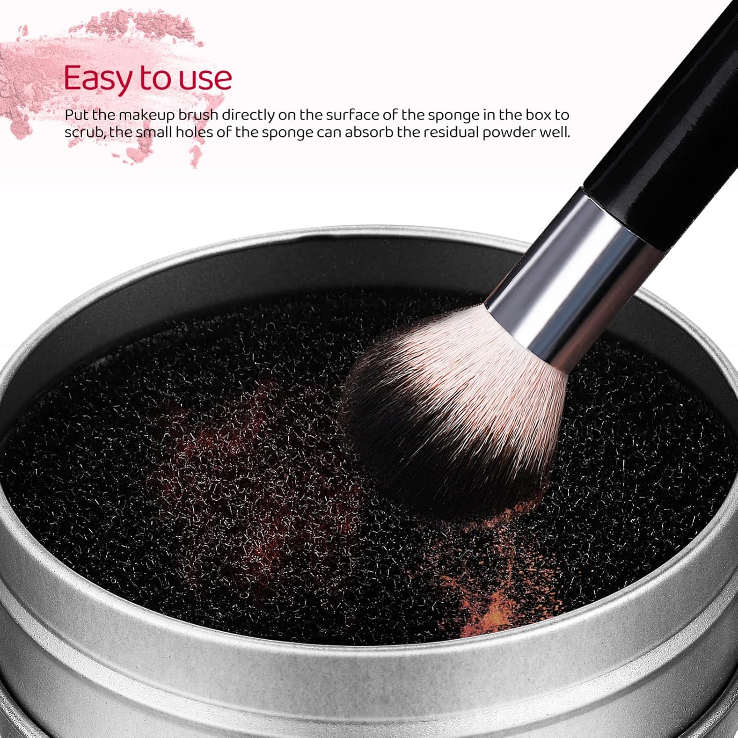 – Easy to use: Put the makeup brush directly on the surface of the sponge in the box to scrub, the small holes of the sponge can absorb the residual powder well.