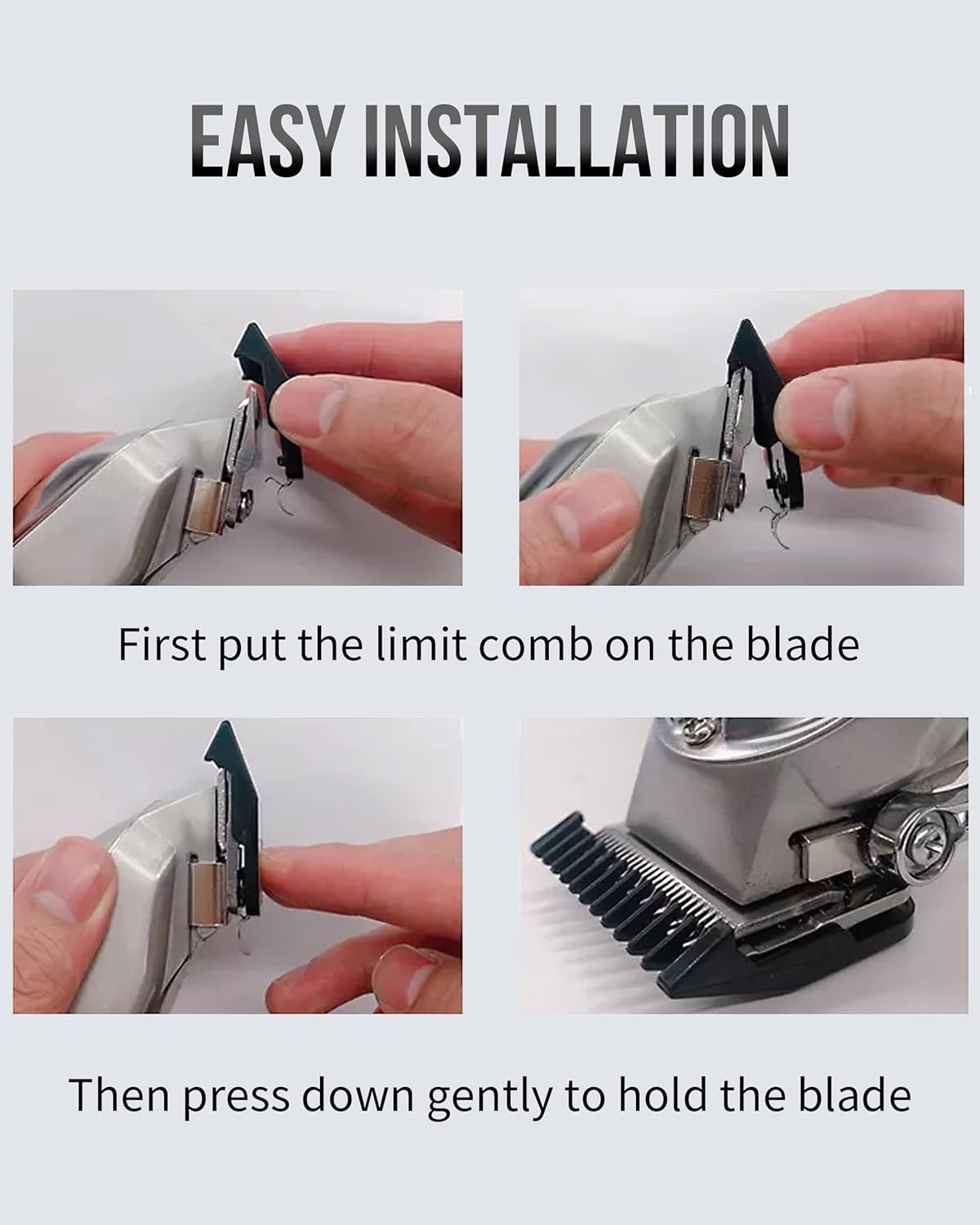 Specifications: Product name: Cutting Guides Guards Color: black Size:1/16”, 1/8”,3/16”, ¼”, 3/8”, ½”, 5/8”, ¾”, 7/8”, and 1” Material: PC and Metal Package Included: 10*Cutting Guides Tips: Refer to the matching model of your own shaver before buying.