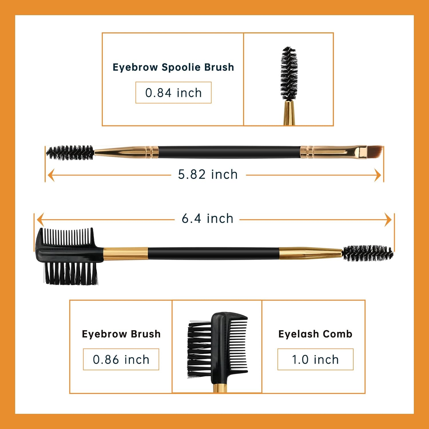 Size: Angled eye brow brush and spoolie brush approx 5.