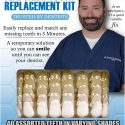 This kit includes upper Instant Smile Flex veneer natural shade, Instant Smile Professional Cosmetic lower, and two packs of fitting material.