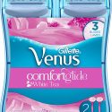 Discover the secret to an easy, yet indulgently close shave with Venus ComfortGlide White Tea-scented disposable razors, featuring 3 blades and flexible moisture bars.