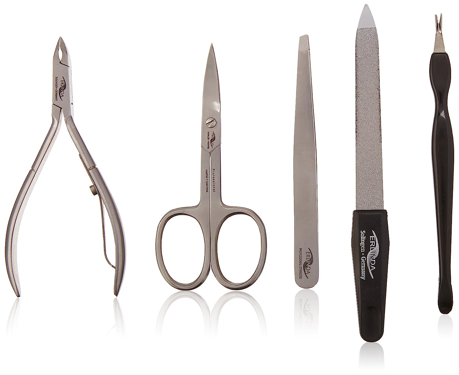 Includes a small cuticle nipper, nail scissor, tweezer, file & cuticle knife.
