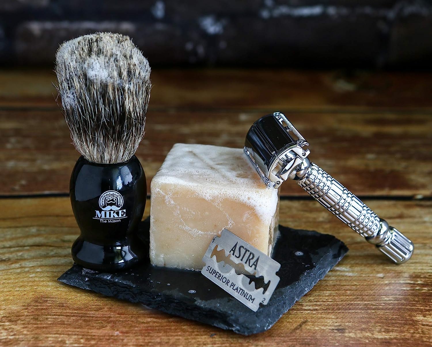 SS4W Three Piece Shave Kit with Razor, Shaving Brush & Stand