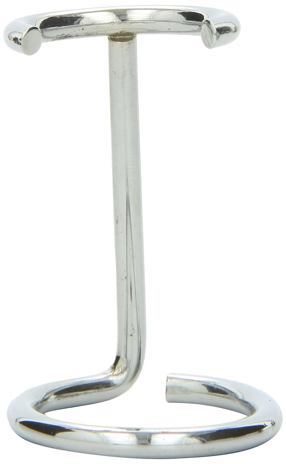 Compact chrome brush stand with angled hook minimizes tip factor.