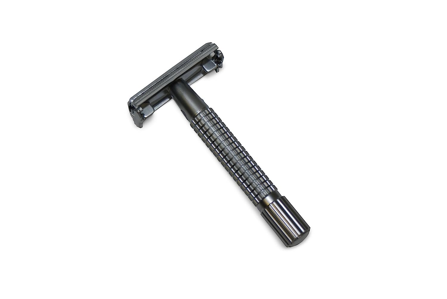 Finely crafted double edge safety razor with textured handle for sure grip, this Colonel Conk razor has a smooth nickel finish and comes with one double edge blade installed.