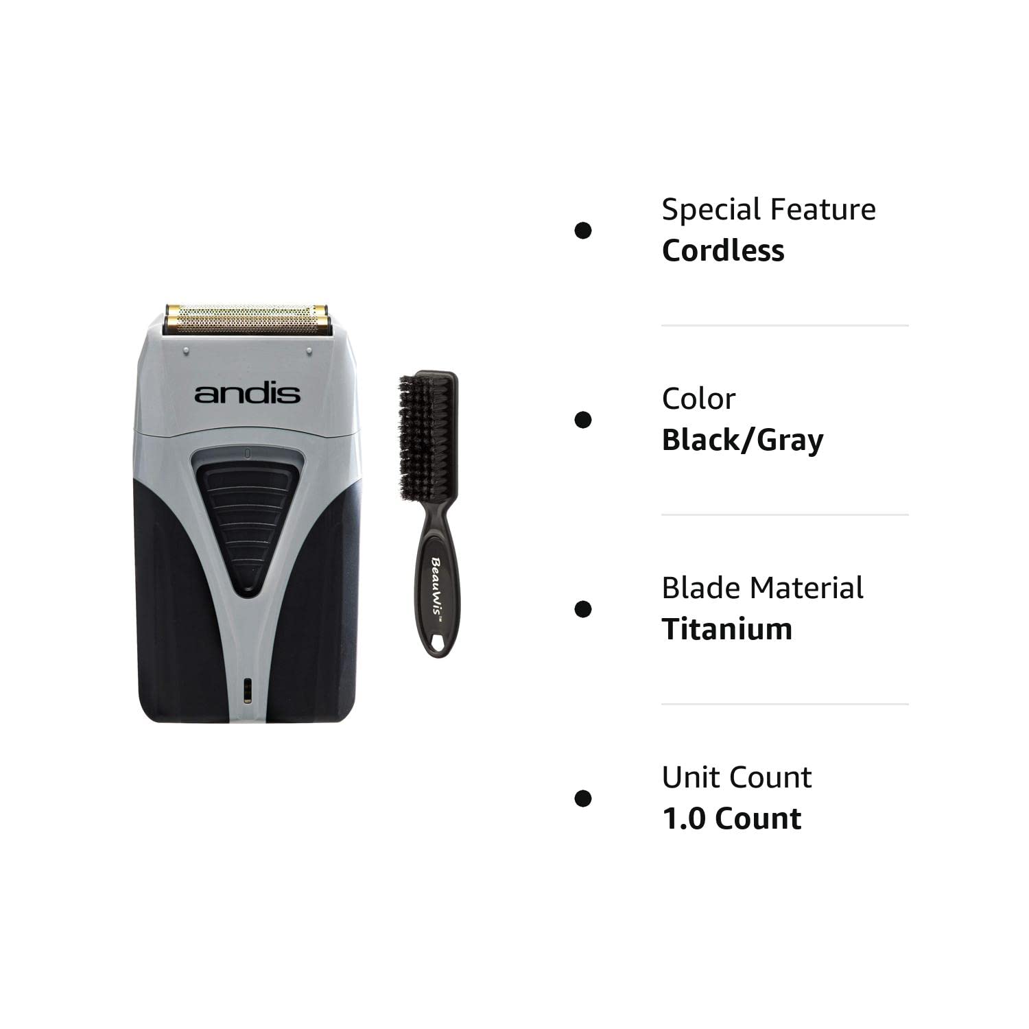 Andis Cordless Men’s Long Lasting Lithium Battery Titanium ProFoil Shaver With a standing charger and a BeauWis cleaning Brush