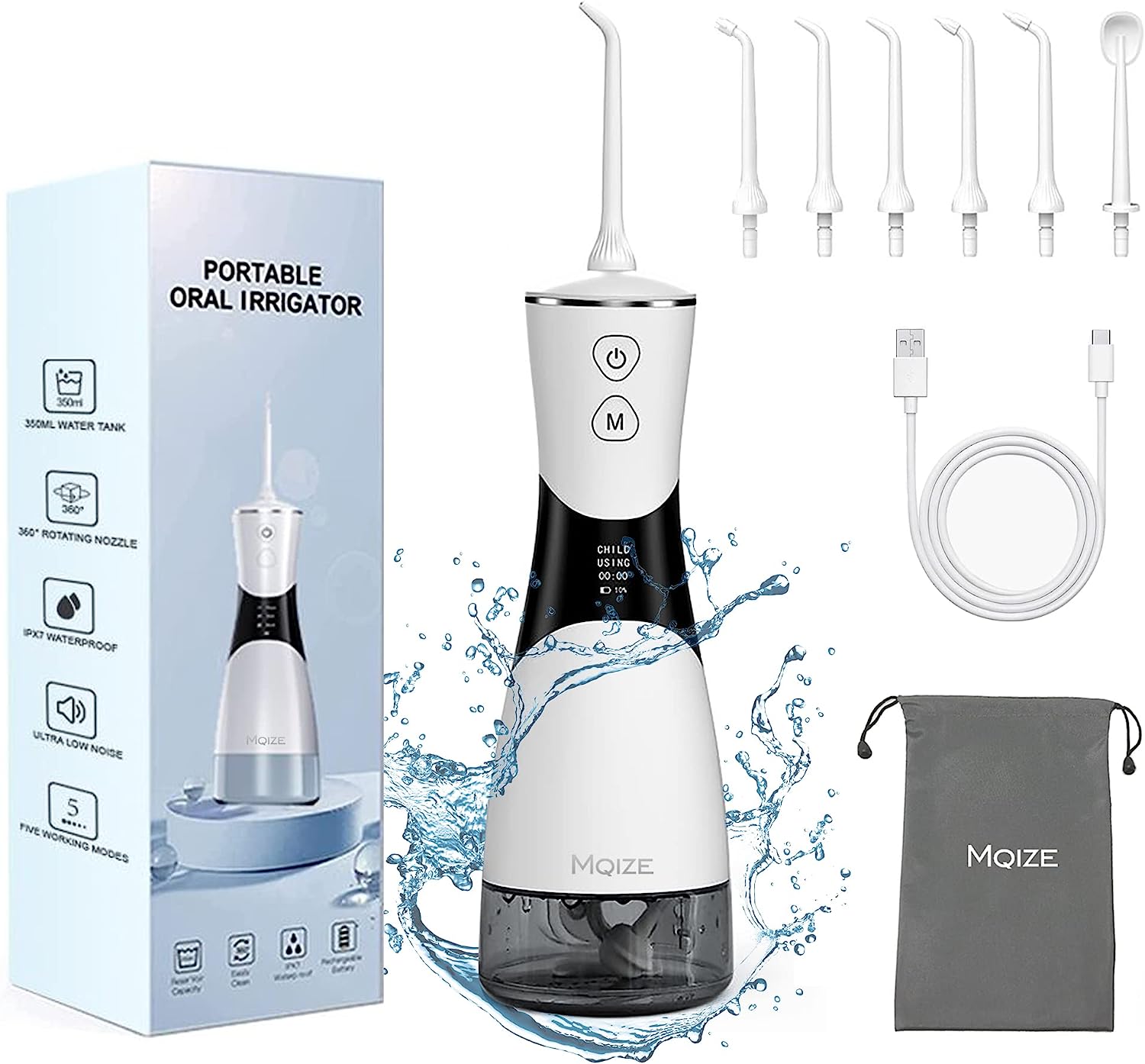 • Multiple cleaning modes water flosser cordless has 5 cleaning modes, standard/strong/soft/child//pulse mode, with low noise design, you can adjust the best mode according to the sensitivity of your teeth and gums to meet various cleaning needs. An innovative memory feature retains your preferred mode, allowing you to continue using the portable water flossers the next time you use it, even if you”ve turned it off.