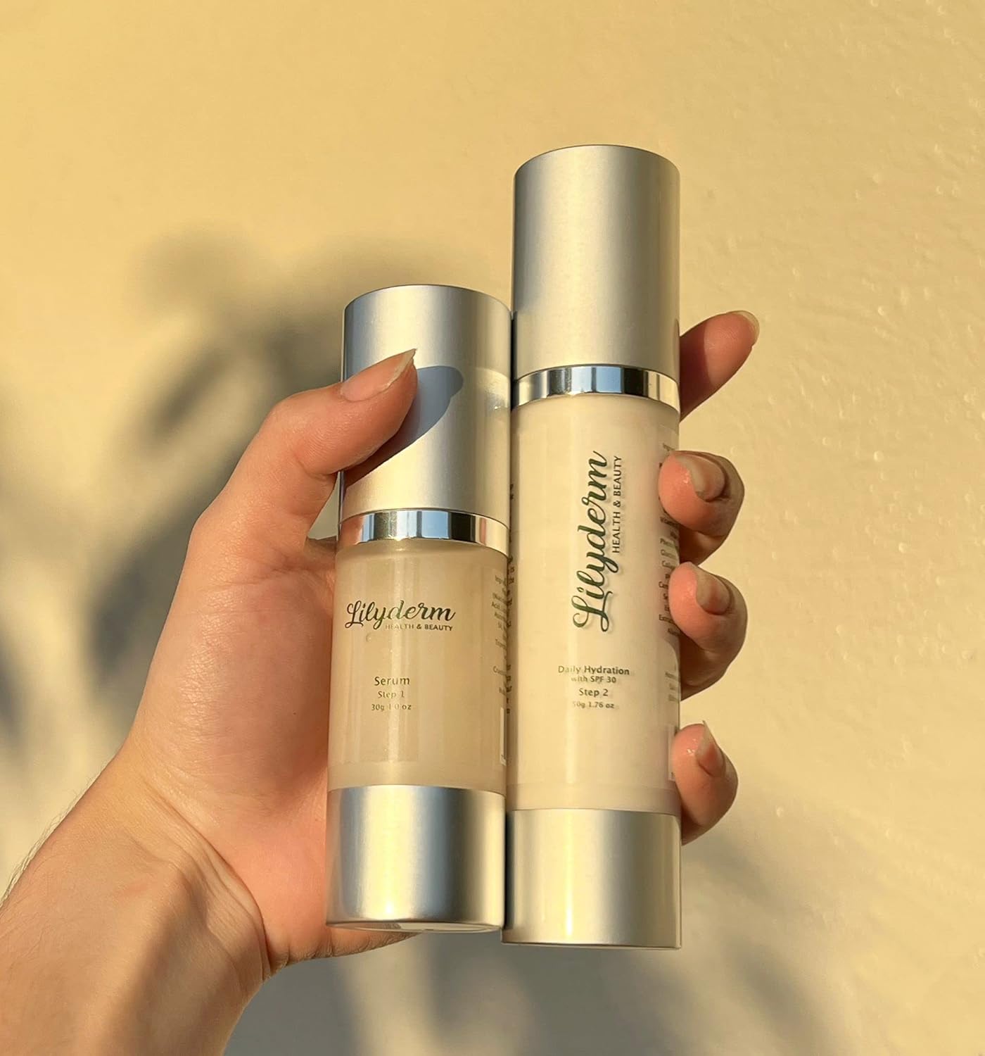 The Serum is a gel based on hyaluronic acid with vitamins (C, B3, and D-Panthenol) and Tripeptide-5 as a collagen enhancer, after applying the Serum apply Daily Hydration (Step 2) super moisturizing and light cream of rapid absorption, the combination of its ingredients such as Squalane, Jojoba Oil, Shea Butter, Aloe Vera, Vitamins, and Natural Extracts protect and keep the skin moisturized avoiding dryness, its rapid absorption allows makeup to be applied.
