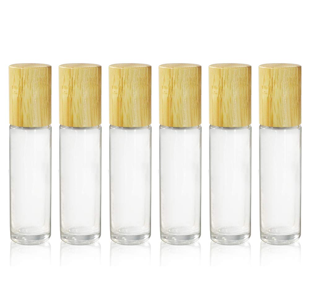 Material:bamboo wooden lid(BPA free) + Clear glass bottles+Stainless steel roller ball.