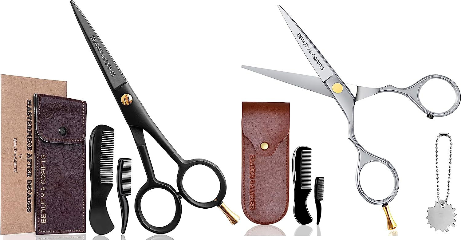 & Craft Pack of 2 German Beard Mustache Scissor and Japanese Beard Mustache Scissor, Including 2 beard combs and 2 mustache combs. A Complete Beard & Mustache kit for home and professional use
