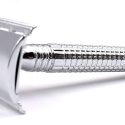 ClassicSamurai Double Edge Safety Razor is a heavyweight safety razor with the infamous head for a close, comfortable shave! Twisting the knob on the bottom of the razor will open the butterfly doors for blade insertion.