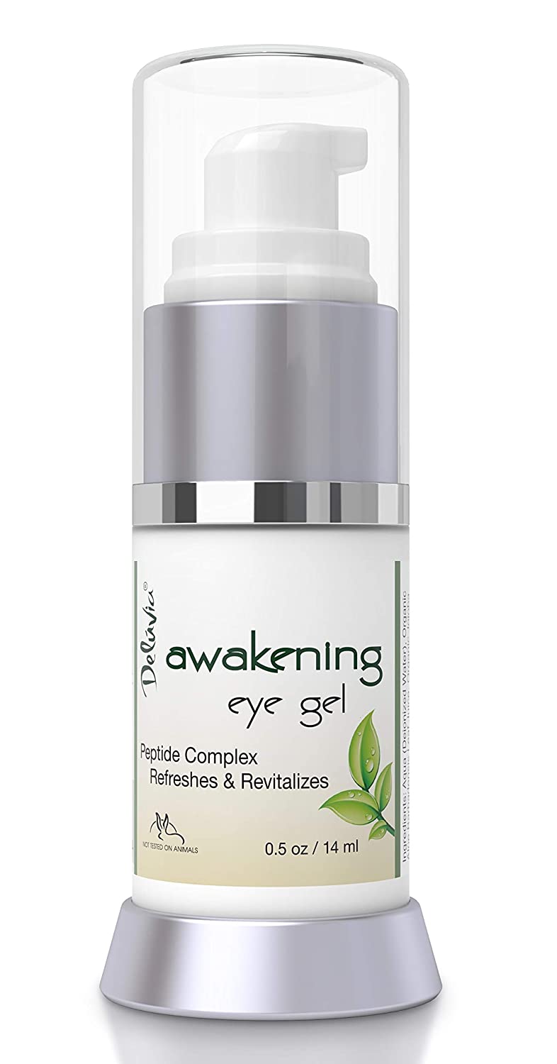 We have created our Deluvia Awakening Eye Gel to hydrate your eyes with quality ingredients like Organic Aloe Vera, Organic Jojoba Seed Oil, MSM, Vitamin E, Hyaluronic Acid to help reduce the appearance of fine lines and wrinkles. Apply under the eye and on eye lids to create total eye hydration. Our botanicals absorb quickly which allows a fast and easy morning routine. Can be used daily (day & night). Made for all skin types.