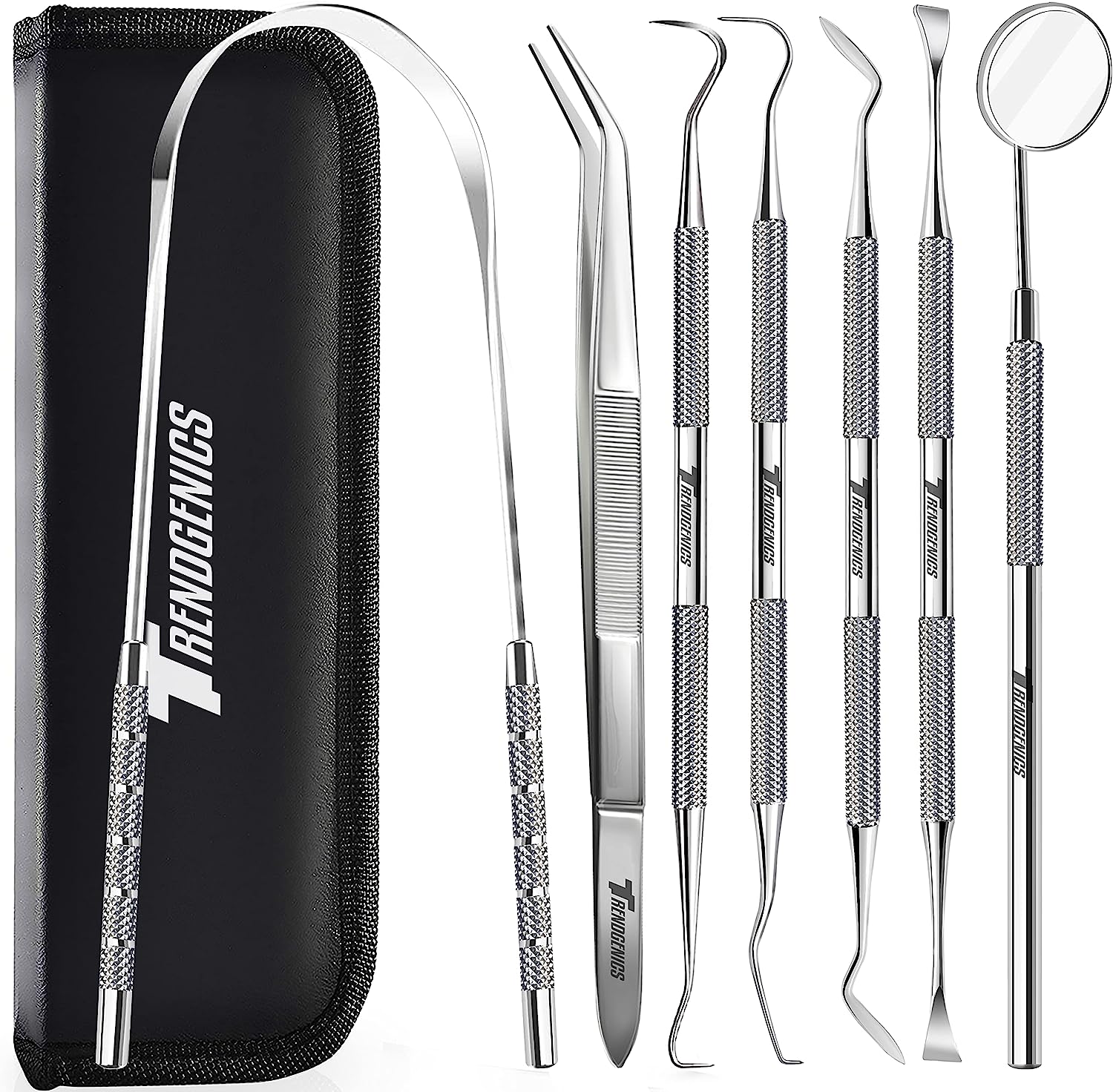 Protective Dental Teeth Cleaning Kit: The set comes with 1 Dentist Mirror, 1 Dental tooth Pick, 1 Tartar Scraper/Calculus Remover, 1 Dental Tweezers & 1 Tongue Cleaner. Removing plaque and stain usually requires a visit to your dentist or dental hygienist. Though, you can remove them yourself by using these basics dental instruments