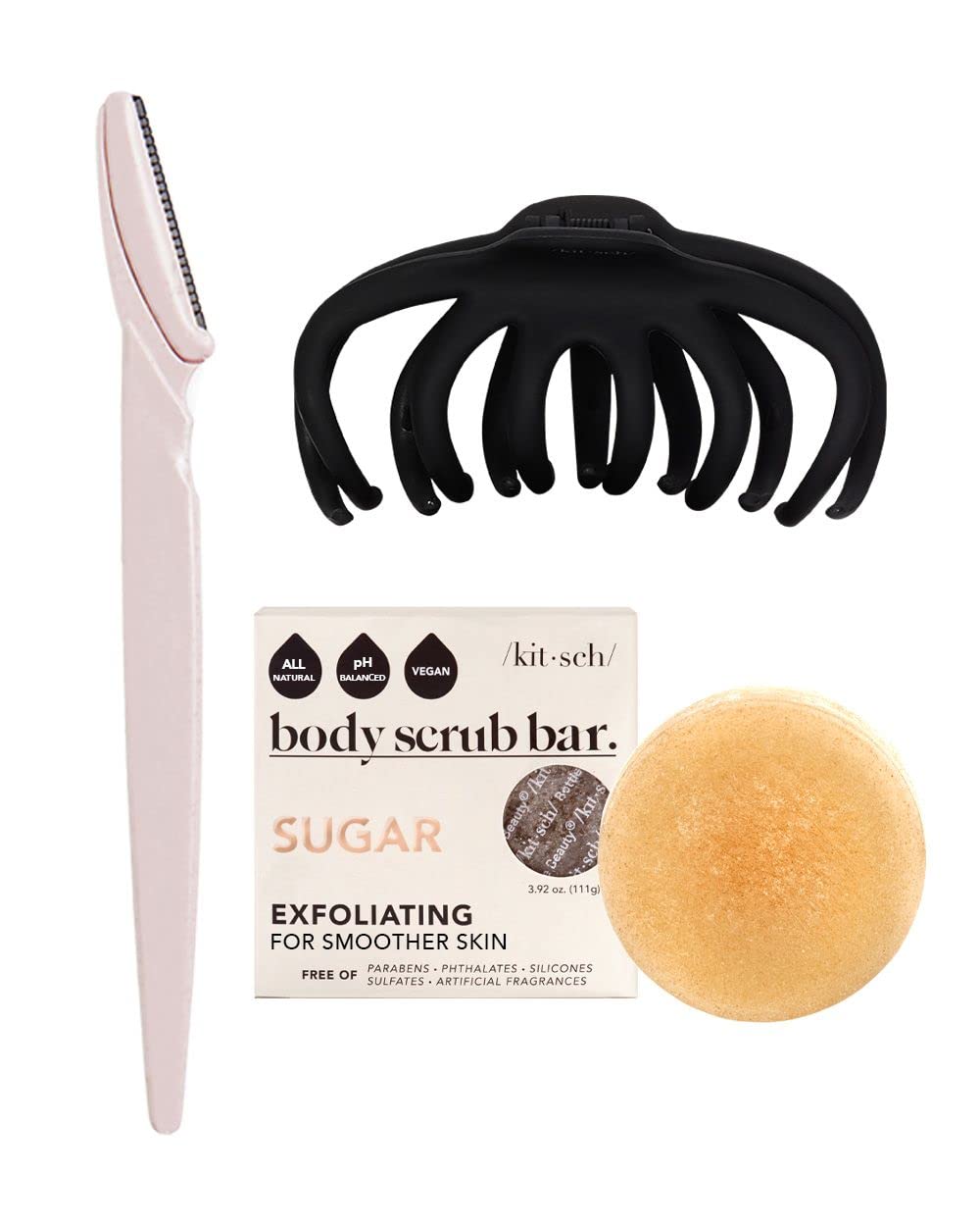 Introducing the ultimate beauty and self-care bundle that will revolutionize your routine—the Facial Hair Removal Epilator, Exfoliating Body Scrub Sugar Bar Soap, and Octopus Claw Clips.