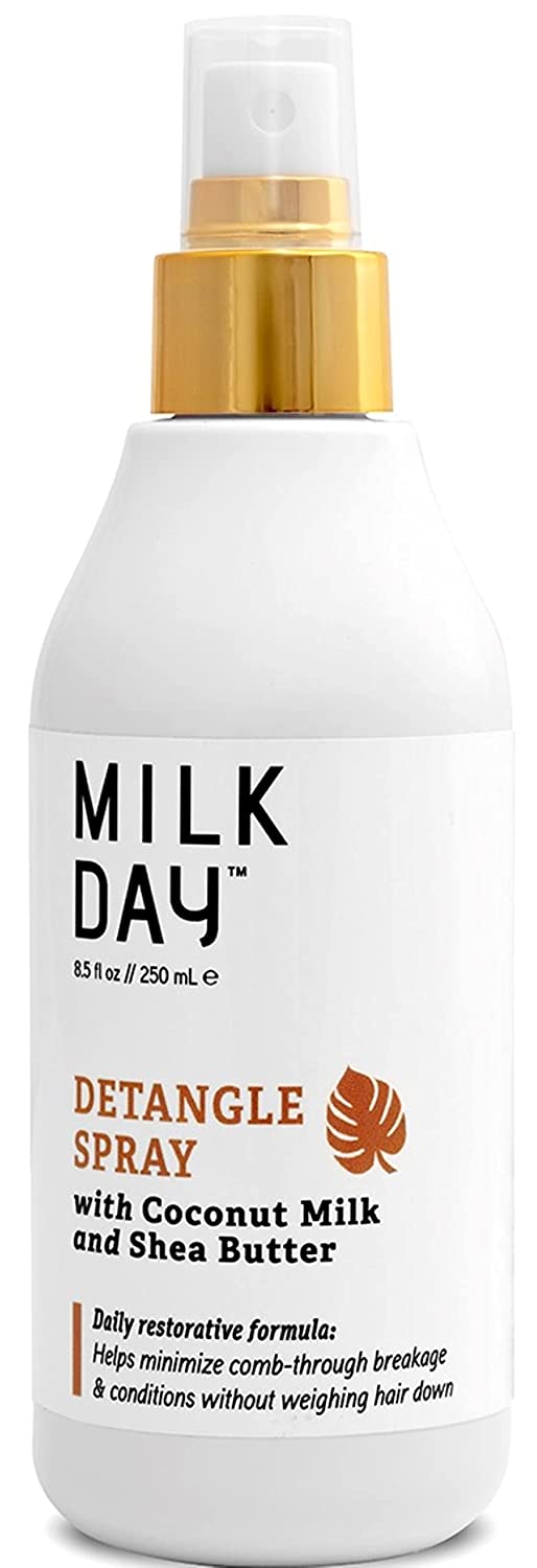DETANGLE SPRAY With Coconut MILK and Shea Butter Daily restorative formula: Helps minimize comb-through breakage & conditions without weighing hair down Infused with hydrating Coconut Milk and smoothing Shea Butter to help detangle, calm frizz and improve manageability.