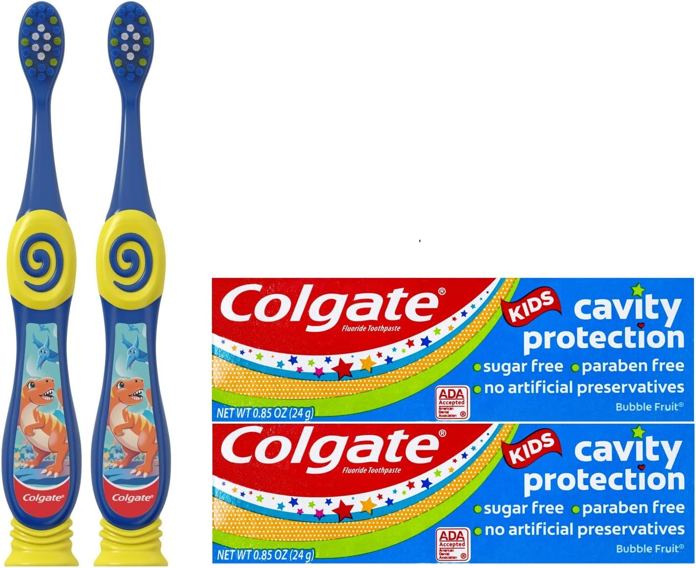 Designed for children ages 2+, the Dinosaur toothbrush features extra soft bristles for gentle and effective cleaning, a thumb grip and rounded handle for a comfortable grip, and a suction cup for easy and fun upright storage.