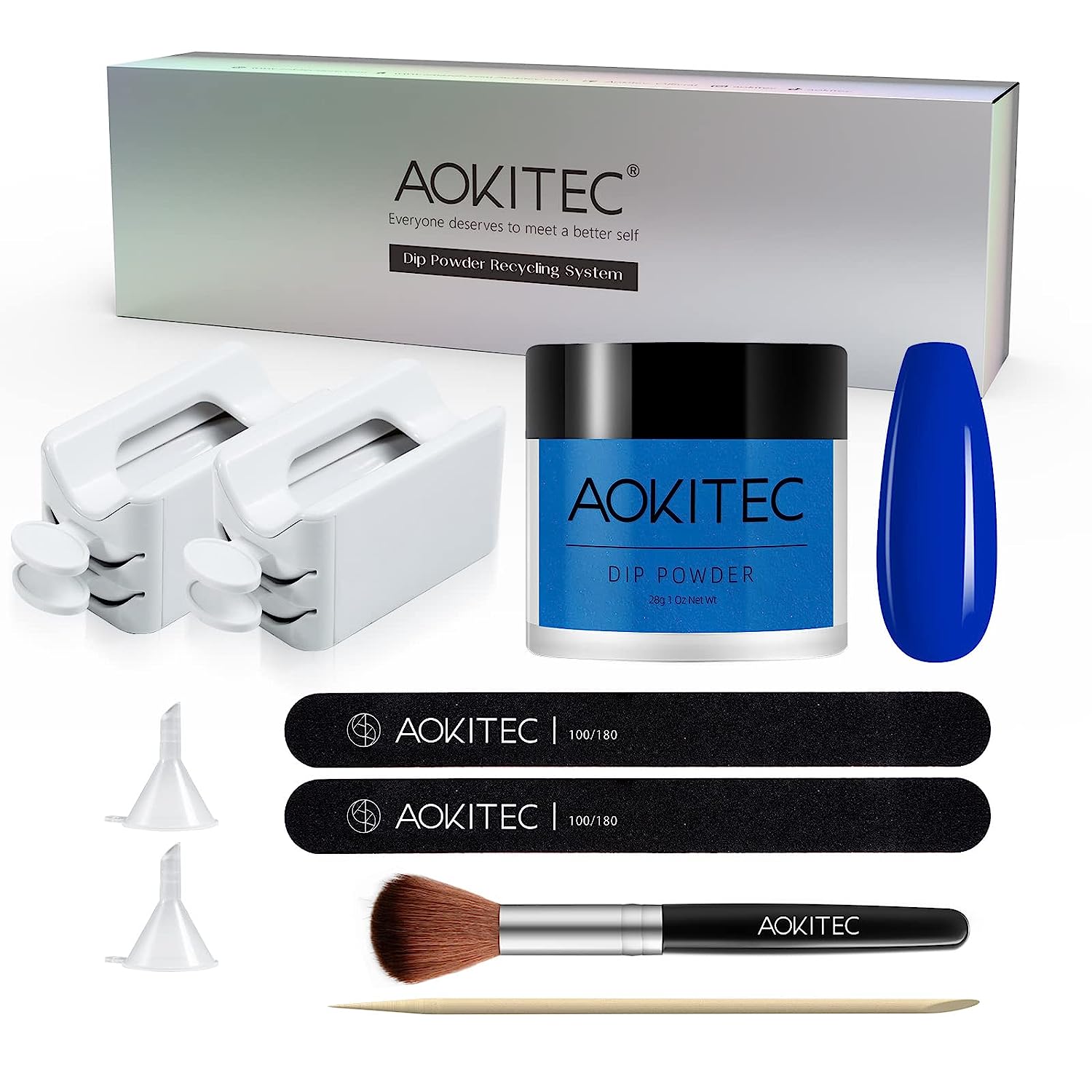 Dip Powder Glitter Blue Color 1OZ,Dip Powder Liquid Set 0.5oz Acrylic Dipping Powder Gel With Base & Top Coat Activator Brush Saver Dip liquid Nail Tools Kit 4+2Pcs Manicure Set