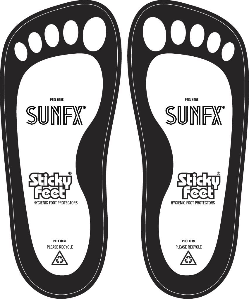 OUR STICKY FEET PROTECTORS: Are a low-cost Superior quality, hygienic and easy to use disposable foot protectors, 100% recyclable, most affordable feet protection for your tanning requirements.