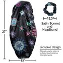 Unique Extra-Long Size Design: Long Bonnet Part-Length: 27/70cm, Width: 15/38cm,Large enough to fit your long natural hair, locs, braids, curly hair, frizzy hair and women with long extensions completely; Elastic Headband- Maximum stretching length 12.5/31cm, you can use it as a headset or put it on your hand, as you like.