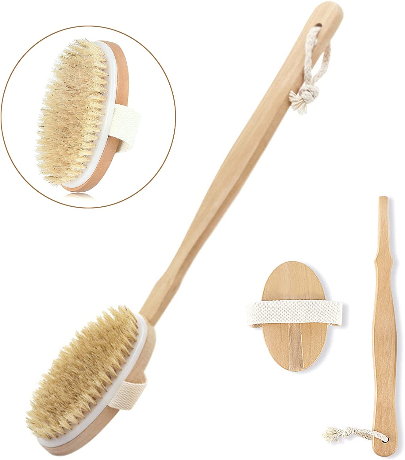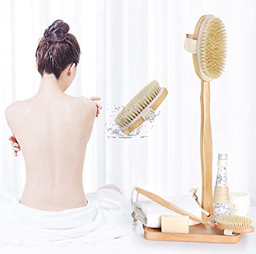 Dry Body Brush, Back Scrubber Detachable Long Handle Bath Brush, Wet And Dry Brushing For Shower With Natural Bristles Exfoliating Massage, Natural Bristle Bath Brush For Remove Dead Skin Cellulite