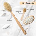 Dry Brush For Cellulite And Lymphatic, Dry Brushing Body Brush Set Natural Boar Bristles Exfoliating Back Scrubber With Long Handle Face Brush And Cellulite Massager For Dead Skin Removing 3 Pcs