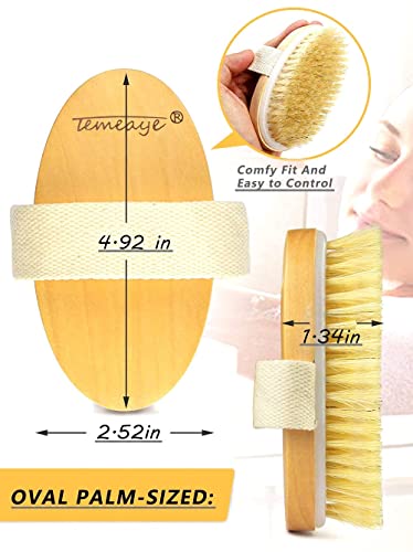 NATURAL&ECO-FRIENDLY Materials give you an at-home SPA experience, The bath brush is made of the finest materials, The medium intensity natural boar bristles are firm and effective to exfoliate and soften skin, The handle is made of smooth polished real wood, Ergonomic design Oval-shaped, and fits in your palm for better control, Cotton strap offers a comfortable and easy grip.