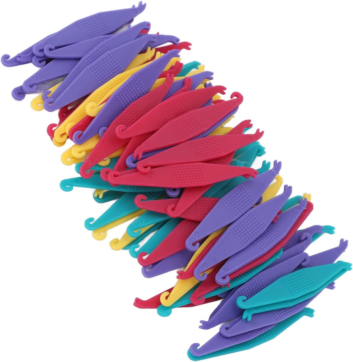 RESISTANT PLASTIC: Made of plastic material, possess strong resistance, waterproof, light weight, is a good insulator Specification: Item Type: Elastic Rubber Bands Placers Function: Ligature ring placement hook Material: Plastic Specifications: 100Pcs a bag Package List: 100 x Elastic Rubber Bands Placers Note: Ship with random color.