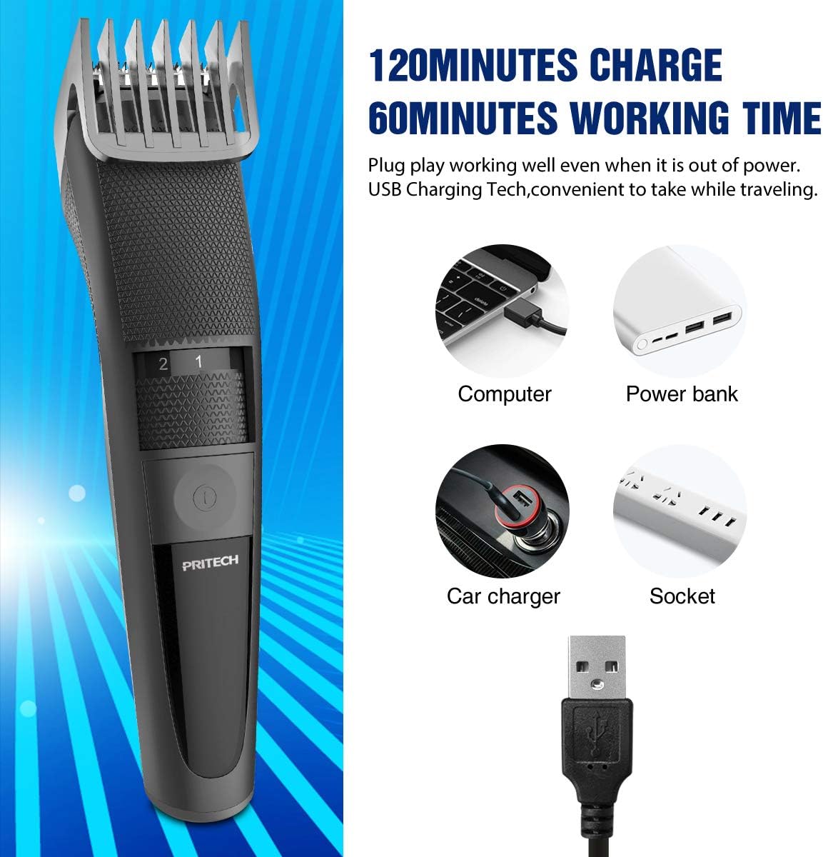 [Compact Ergonomic Design]: PRITEC Beard Trimmer for men owns ergonomic body design and frosted surface for easier handling and better hand feeling. The portable hair clipper is perfect for household or travel.