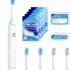 What will you get? 1 * Electric toothbrush for adults 4 * Sonic Toothbrush Replacement Heads(2 cleaning brush heads and 2 extra soft electric toothbrush replacement heads) 4 * Bristles Protective Covers 1 * Travel Case 1 * USB Charging Cable 1 * Charger 1 * User Guide How to use Sonic Electric Toothbrushes? 1.