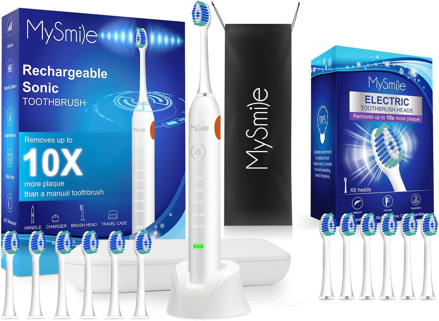 Electric Toothbrush for Adults, Rechargeable Sonic Electronic Toothbrush with 12 Brush Heads and Travel Case