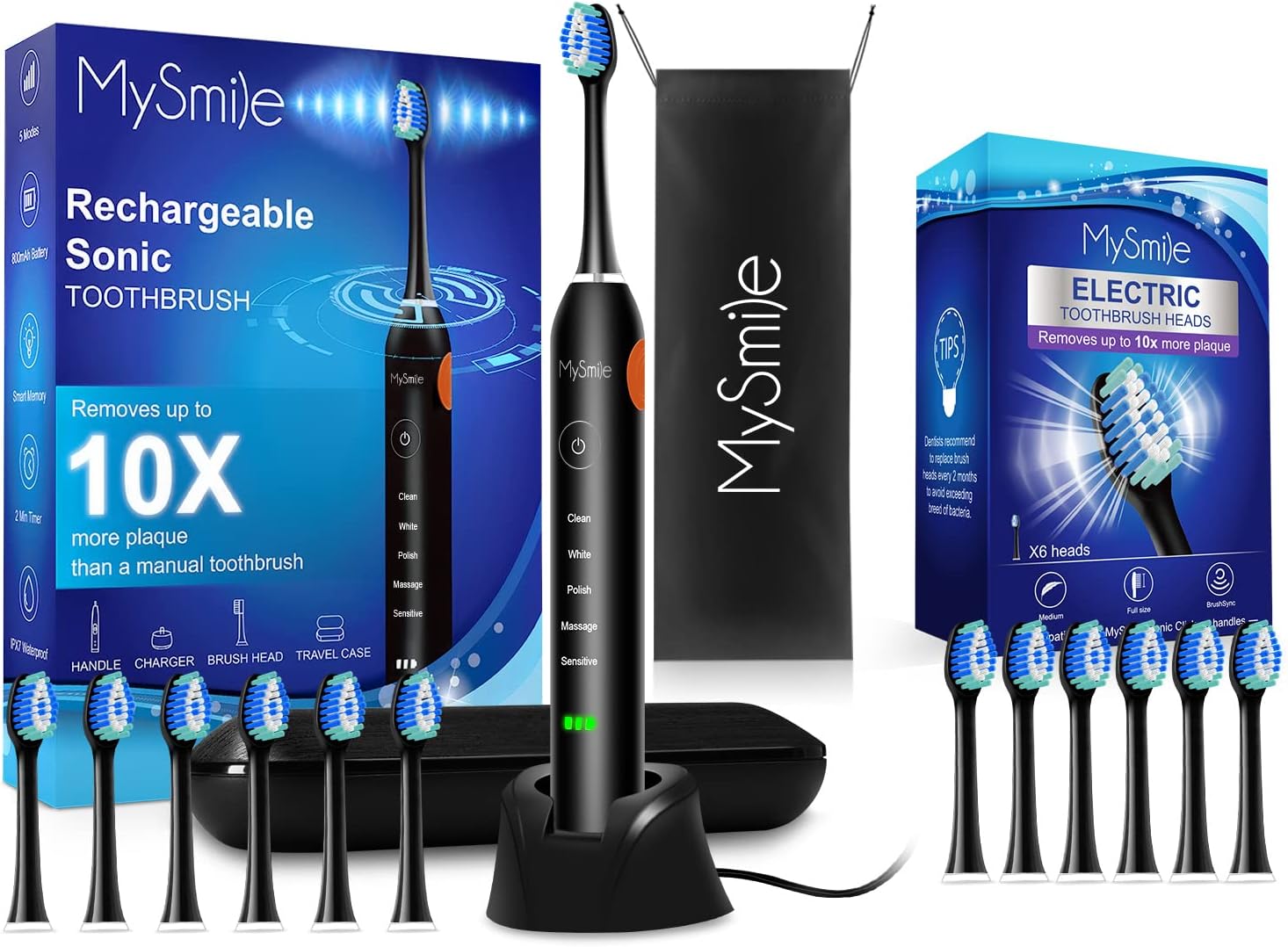 5 Personalized Electronic Toothbrush Modes – electric toothbrush offers 5 different modes of automatic memory function – Clean, White, Polish, Massage, Sensitive. Sonic electric toothbrush can solve different oral problem and fresh oral breath.